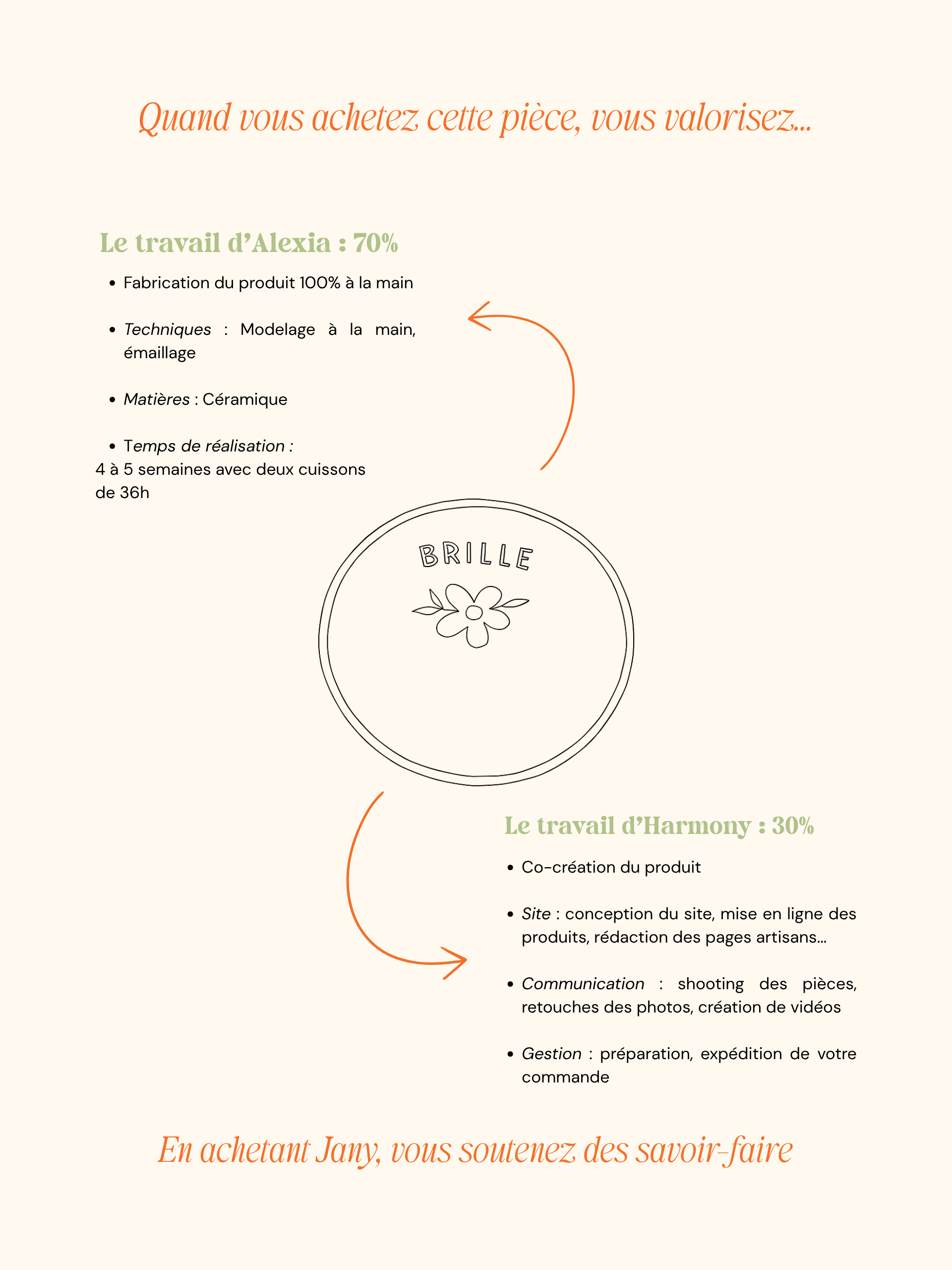 On dit que la gourmandise est un vilain défaut… pas chez Jany ! Ici on aime se faire plaisir et quoi de mieux qu’une belle assiette pour enchanter chaque gourmandise ? Elle deviendra rapidement votre favorite pour y glisser une part de carrot cake ou encore y déposer vos bijoux préférés. À vous de choisir son utilité!