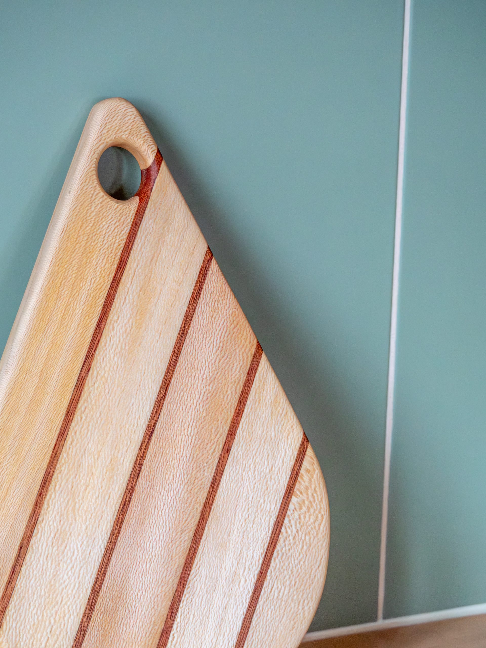 Pour trancher votre buche pendant les fêtes, pour découper votre saucisson à l’apéro ou encore couper vos citrons pour votre cocktail, la planche à découper est un indispensable en cuisine. Pour le quotidien, rien de mieux qu’une petite planche polyvalente pour tous vos besoins. C’est dans cette idée que Loïc, ébéniste, a confectionné cette planche à découper Ibaia. Pensée pour vous accompagner au quotidien, cette planche deviendra votre meilleure alliée en cuisine.